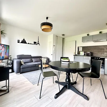 El apartamento de 60 m^2 se sitúa a unos 5 minutos a pie del centro de Chessy. Puedes llegar al Curioso laberinto de Alicia en 15 minutos en coche, mientras que el aeropuerto París-Charles de Gaulle está a 40 km.